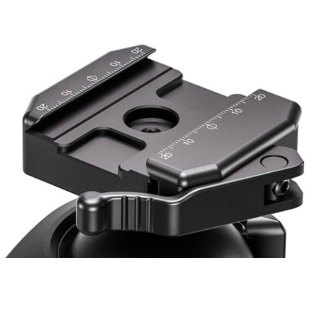 For a device that you wish to stabilize but which is not Arca-Swiss compatible, you can use the included 1/4-20 plate.