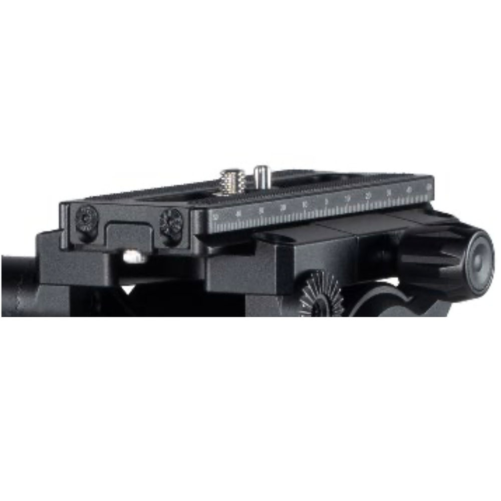 Fast & easy setup: Tripod has extended twist-lock system, 3-section carbon fiber legs, detachable through-the-center column. Arca-Swiss mounted fluid head has smooth movement and balanced resistance. Extended balance plate. Solid connection to scope. Strong, hand-friendly clamps and knobs.